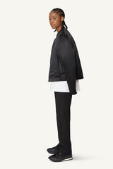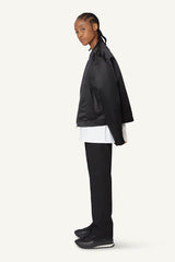 The Oversize Satin Bomber Jacket has been cut from a luxurious and particularly smooth heavy satin. The silhouette has been slightly cropped in body length and refined for a timeless luxurious finish.