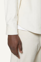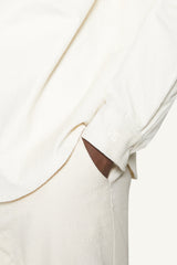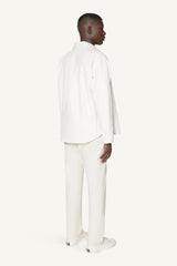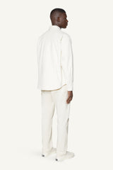 We have reimagined a classic essential, made to slot seamlessly into your wardrobe. The Ivory Overshirt is cut oversized for layering and crafted from cotton, matt buttons and tonal embroidery on the cuffs. Perfect to dress up or down the Ivory Overshirt is a comfortable addition to your wardrobe.